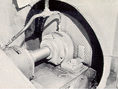 3#上漿機(jī)風(fēng)扇軸承和軸近拍。油霧潤滑極大地減少了該位置著火的隱患。
